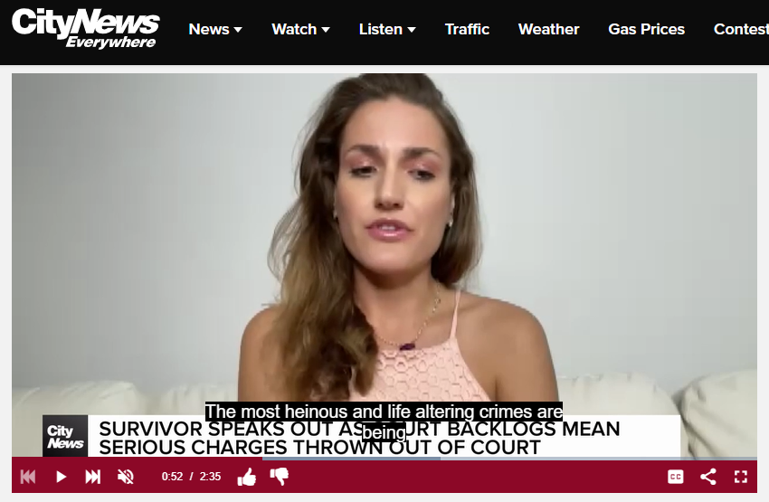 Cait Alexander is a survivor, advocate, founder of EVE and co-organizer of Voices Against Violence. In 2021, Cait Alexander was nearly killed by her ex-partner. But it never went to trial. Delays meant her ex's right to a trial in a reasonable time was violated. Alexander wants to make sure that never happens to anyone ever again. Source: City News.